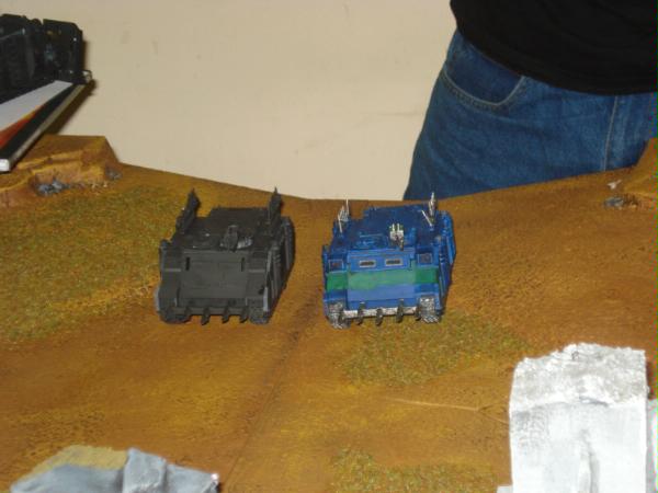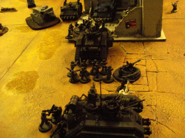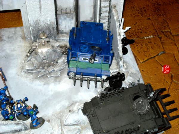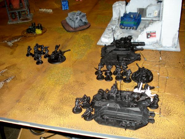 I deploy on the opposite corner to him, and in my first of many mistakes don't really utilize the cover provided very well. One of my squads is entirely in the open, and I feel like I probably started my Leman's back too far to act as a deterent. I took my list, which I'd wanted to be very mobile, and turned it into a gunline of two squads and a bunch of vehicles. Not very smart.