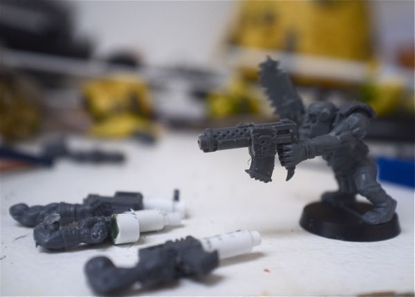This raises the arm, and gives a bit more meat to the underside (armpit), changing the angle at which it attaches to the model's torso. A little filing, and they blend together seamlessly.