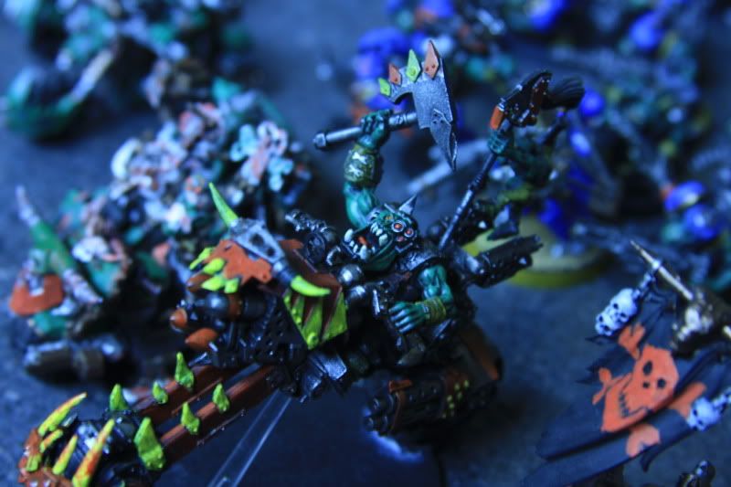 The paint might look thick because of the watered down chaos black wash that i did to make it look grimy. The undercoat is showing through cause that is my style of painting, i like my orks to look gritty and dark, not flamboyantly green.