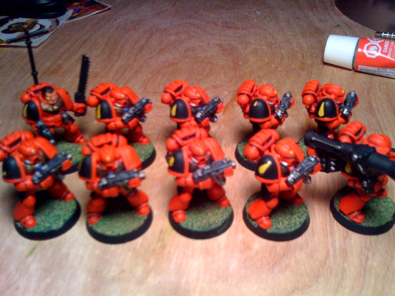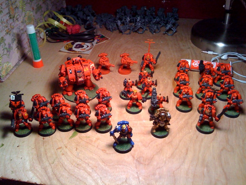 Listed here are tabletop plus quality painted Blood Angel space marines. Where indicated more time and effort was put into the painting and the overall quality is just above tabletop IMHO with very good quality on the HQ choices and Furioso Dread.