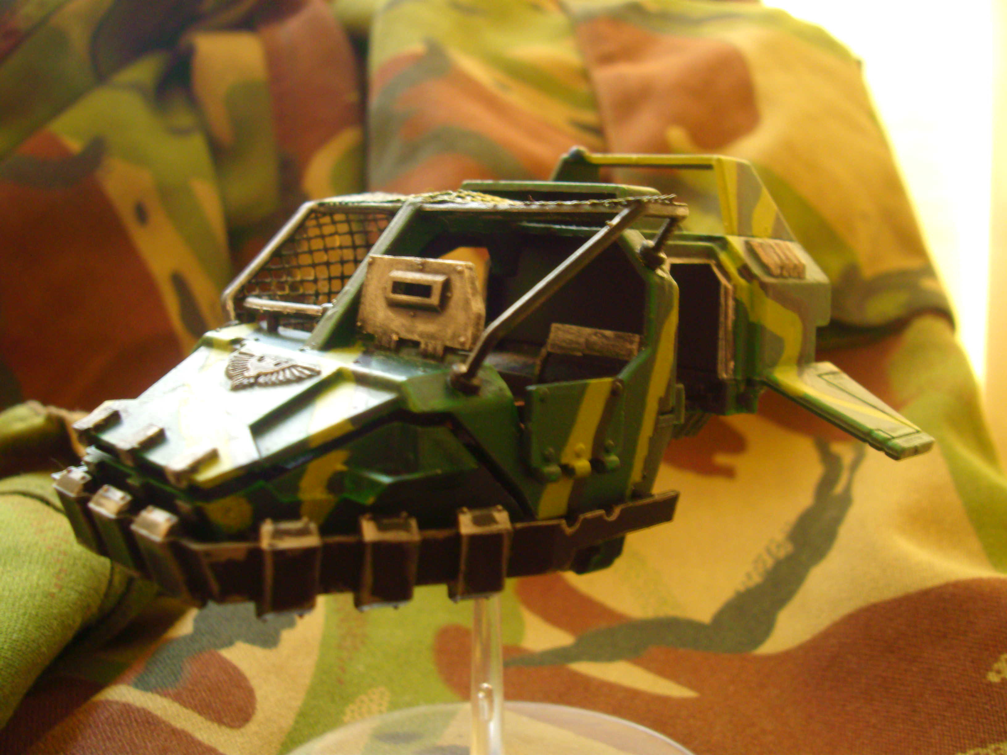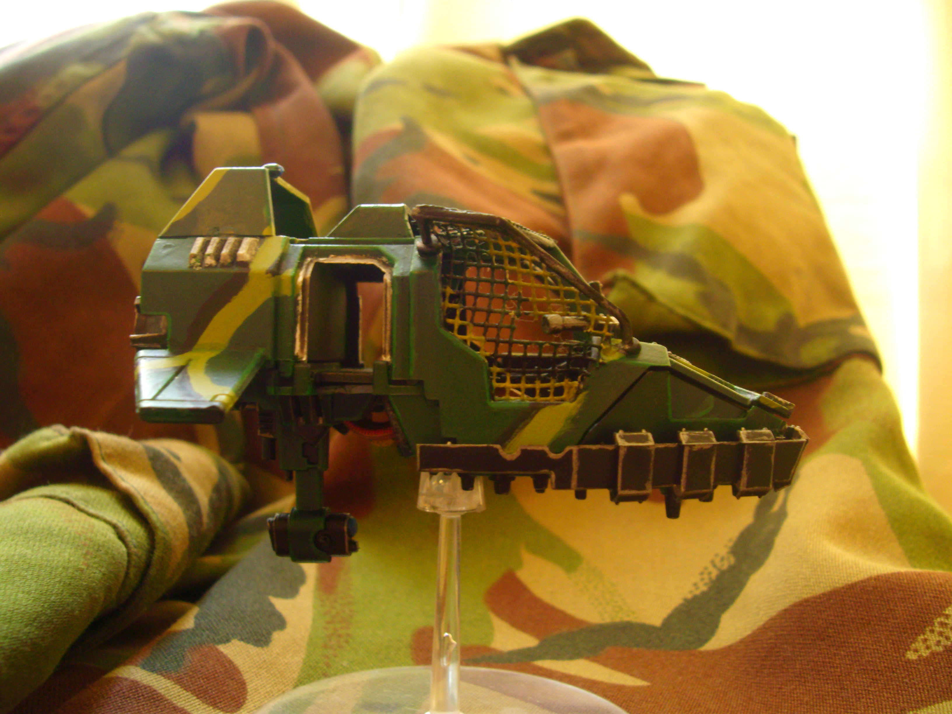 a typical catachan army is troop heavy and armor light. as sentanals are the only IG armor exceptible in a catachan army i went looking for somthing to bulck out my army. the landspeeder is i think perfectly suited to this roll. light like the sentanal but more maneuverable with heavyer weapon potential. iv started my conversion using sentanal pilots, camo paint scheme and camo netting. im hoping to get some pics up soon id like some discussion in to how els to pimp this ride and posible any other vehicles that could be jungle adapted.