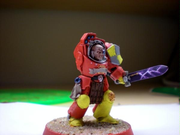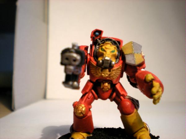So after much consideration I have decided to stripe all the paint off my space marines and start fresh. I am going with the not so well known chapter, the Fire Lords. Right now I am working on testing on AoBR Termies. Here are a few pics of what I have going so far.