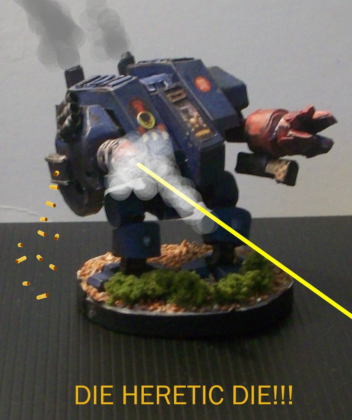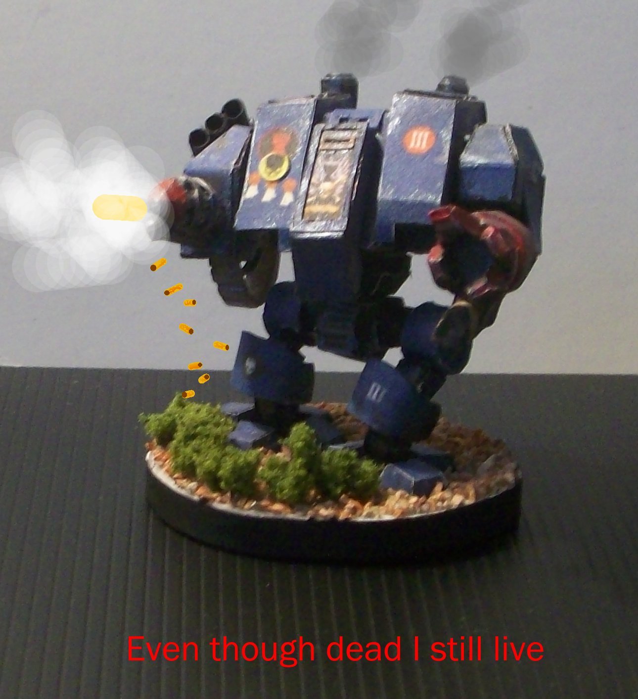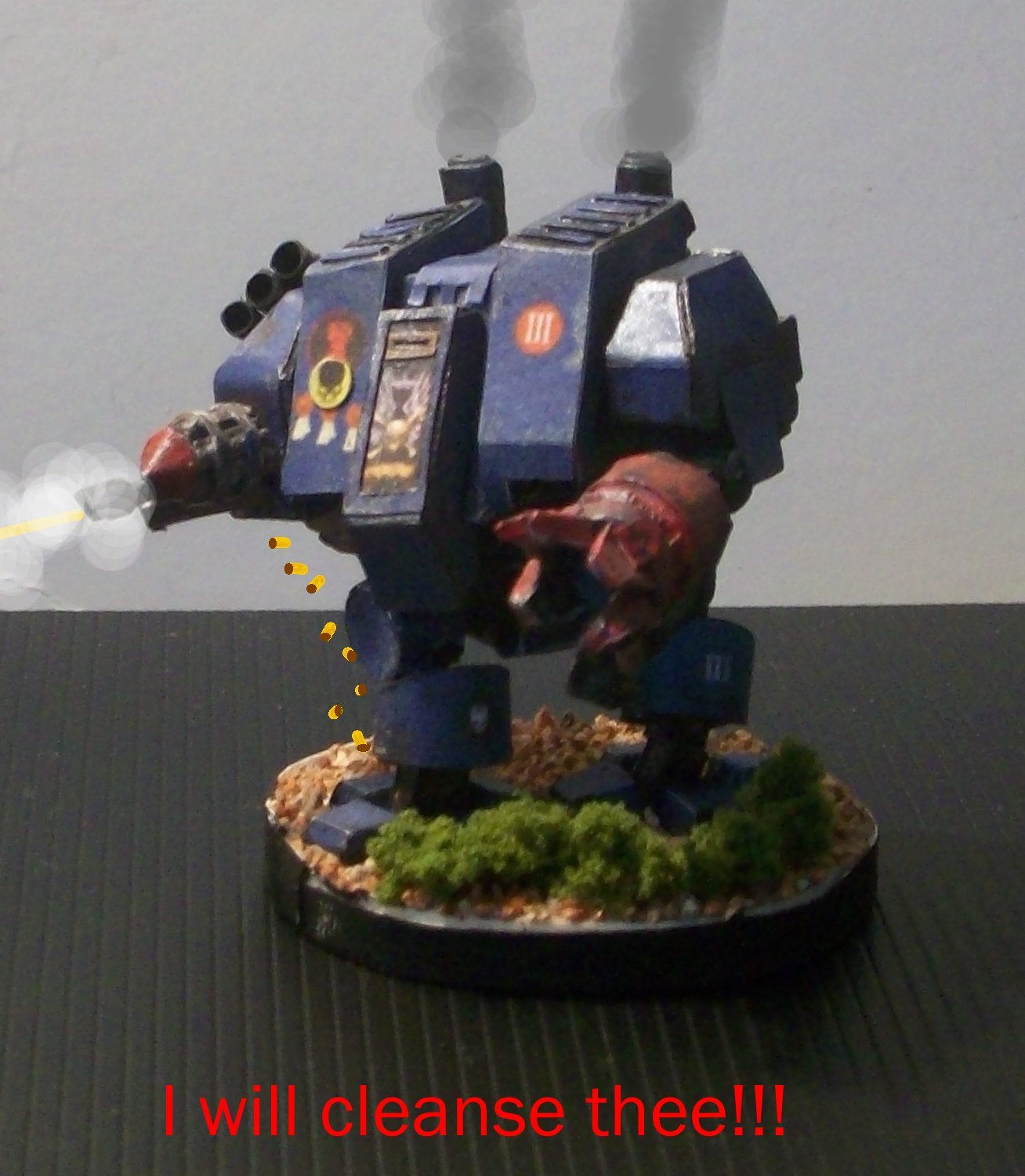 I make some things out of cardstock when I want to proxy them, before deciding to buy the real model, such as Drop Pods. Those are only 3 pages and they still took me a couple hours apiece, so I bet the dred took this guy forever, right silveroxide?