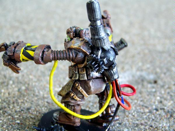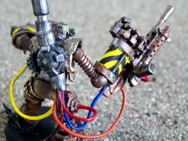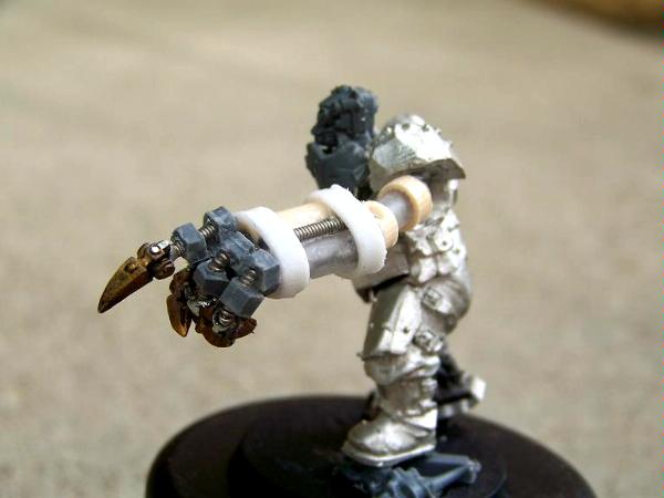 Are those springs from pens? The ones you used for the fingers that is. Nice scratch-build. I'd say he could be a bit beefier or have some bionic upgrades and a thunder hammer-like weapon.