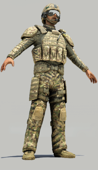 File down some of the details on the cargo pockets to make them look like pieces of carapace armor. Green stuff a visor (probably full-face on future figs) and a Camelbak. The next figs will also have: no bayonet or canteen, more "open" poses so I can attach mag pouches/grenades to their chests, and longer rifles (instead of this figure's "carbine"). I think I'll achieve the longer rifles by scavenging from my box of Catachan bits and essentially using their lasguns to lengthen the ones on my Cadian figs. Pathfinders will probably get the full camo scheme and lots of terrain on their bases.