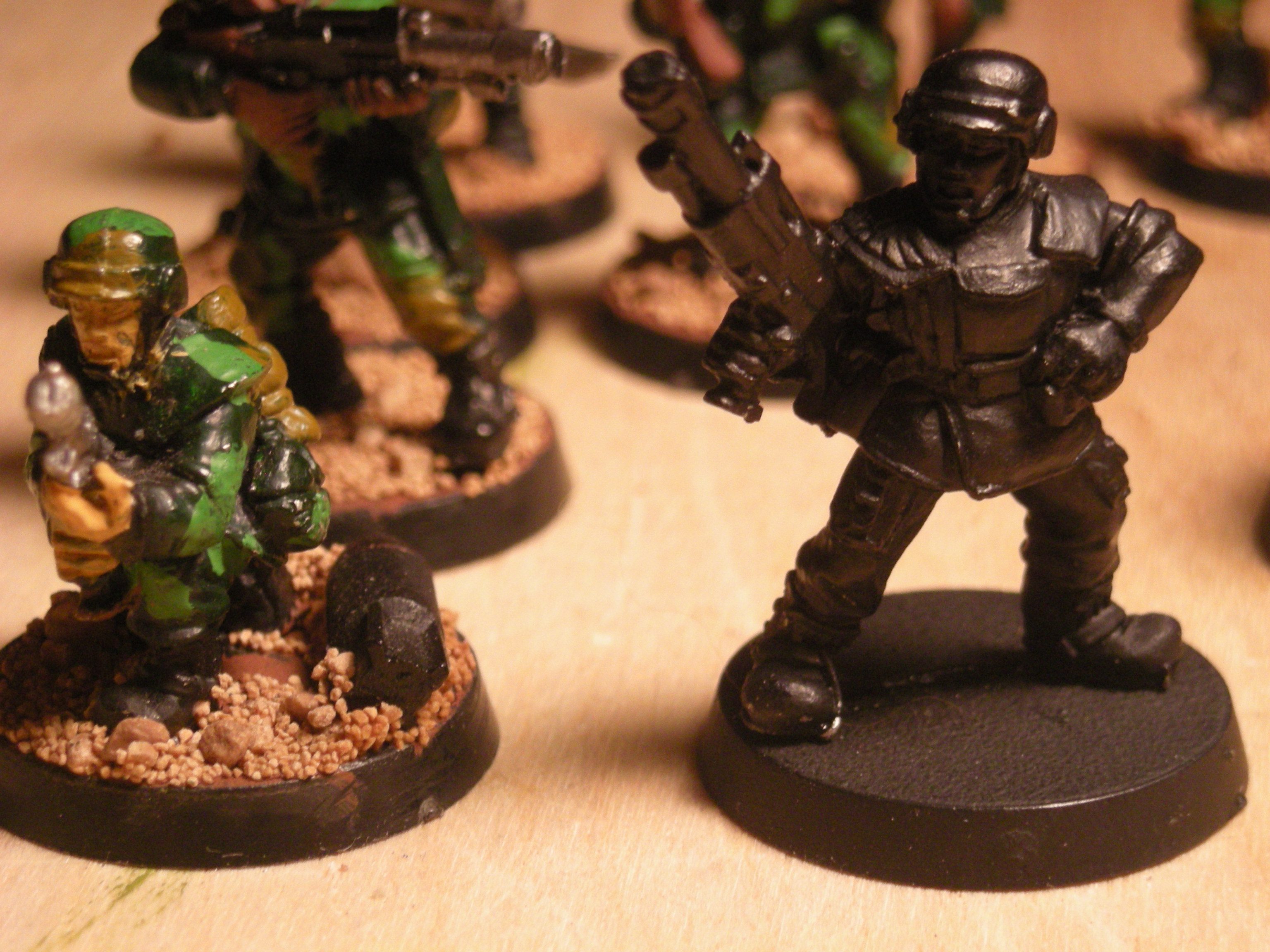 The third squad is equipped with a missile launcher, flamer, Only metal unit is the ML. There is also a troop with a funny gun (pictured) which I had used as a plasma gun when needed. I never got any argument since it clearly wasn't a flashlight.