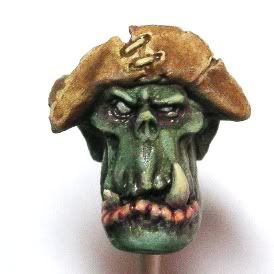 Here are a few shots of the model that I am currently working on. I really love the models that came out in the late '90s and this Gorkamorka ork is full of character. The head is almost done, just another highlight on the teeth and some pupils.