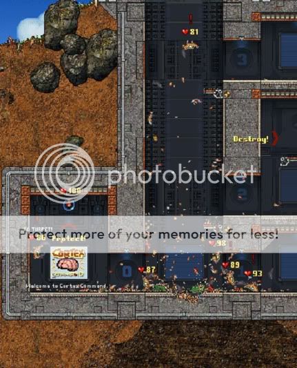 This screenshot is a good example of unpredictability, immediatly after this was taken the Dummy was mown down by friendly fire from a Dreadnought, which proceeded to get stuck trying to get down the shaft, with this entrance to my base blocked, i redirected my attentions elsewhere...