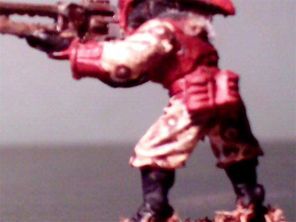 The camo works well, I like it - I wasn't sure about the red to start with, but it has grown on me - the only suggestions I can make is maybe to add a red/black wash to the armour to make the detail stand out, and maybe use a browner (or black) trim on the base.