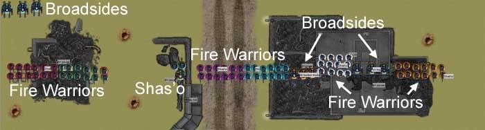The Broadsides tried to cram themselves even further into the corner, and the Fire Warriors on the roof rearranged themselves a little, but everything else stayed put.