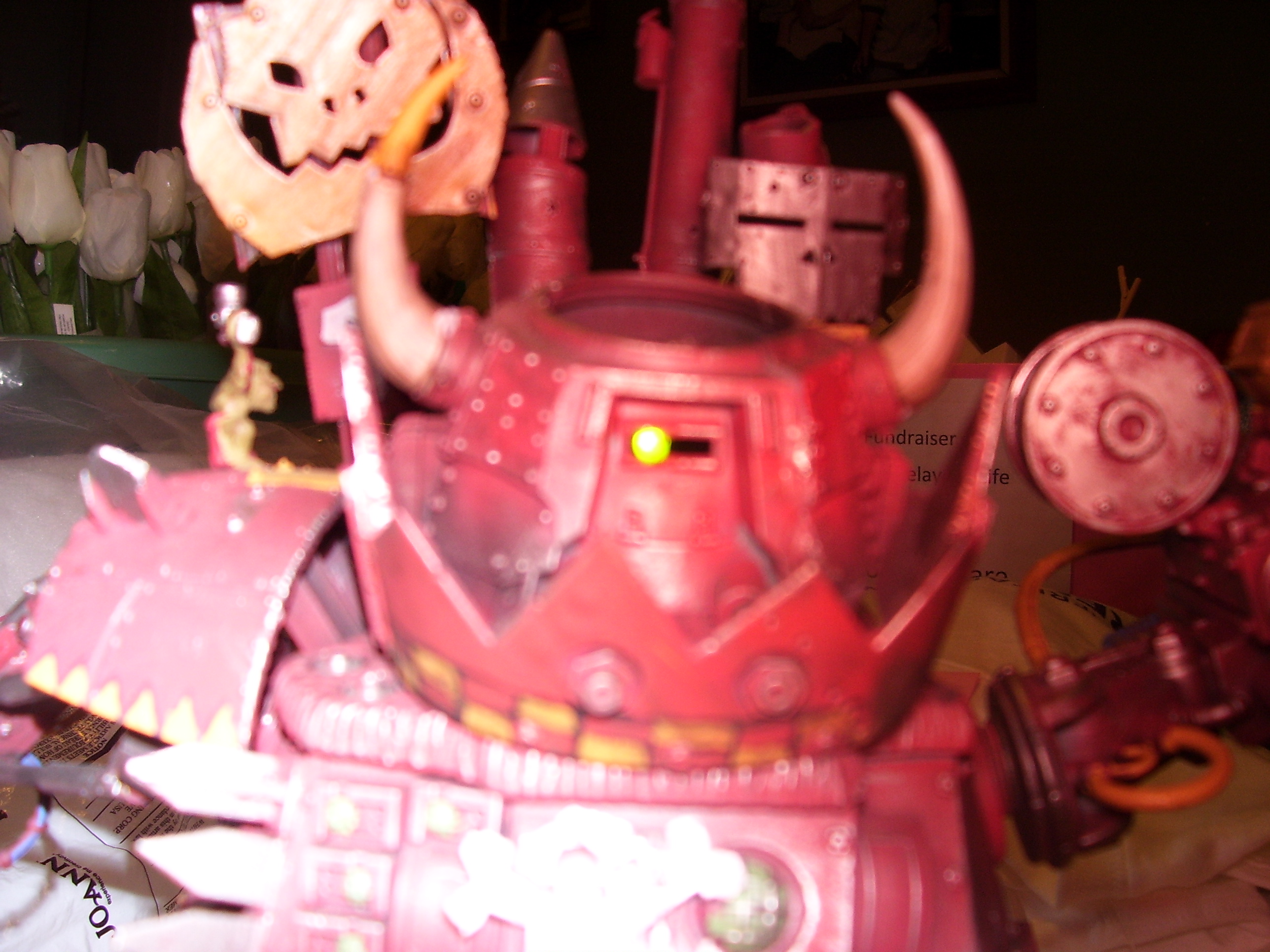 I love your stompas. For the belly guns on my kustom stompa I just grabbed an earthshaker, cut a hole out of the hull, made the nose hole of the big face gliph bigger and then attached it with lots of glue.