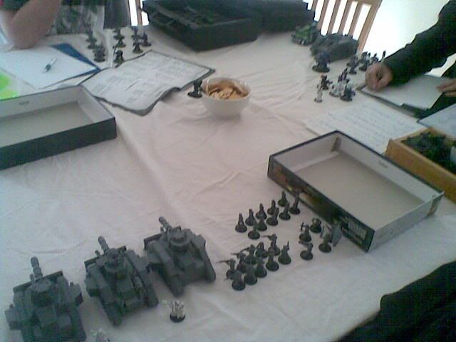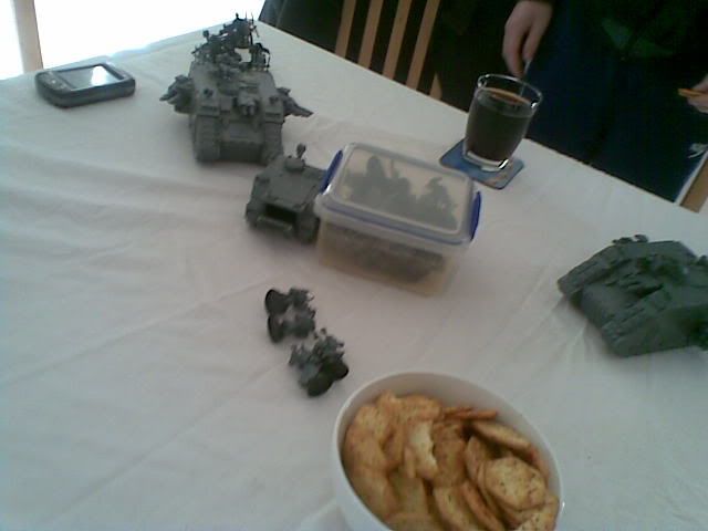 Me and my friends tried a 3-way game but they just get too confusing, mainly why games workshop haven't made rules for them =D But it looked like a really funny game, especially when abbadon just annihalates the tanks. Loved the reward of snacks at the end to the victors, made me laugh! And tell the defiler to go easy on them otherwise he'll end up all fat like nurgle  snacks for the snack god!!!