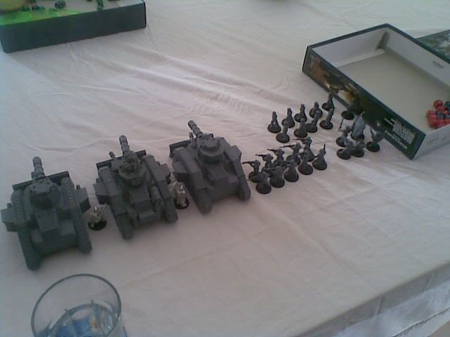 Seeking revenge for his poor guardsmen, superscope unleshed all of his firepower of his tanks on the forces of chaos, ignoring the space marines. Needless to say, the tanks score alot of kills.