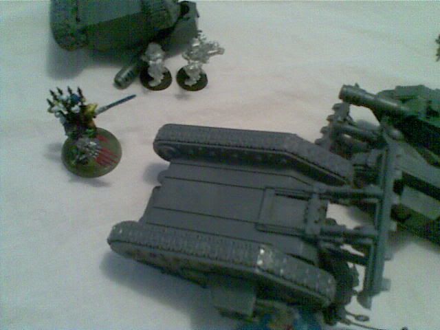 The defiler "defiles" the land raider crusader and breaks it tracks
