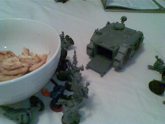 Scerri moves forward with pretty much everything he's got. His rhino unloads his troops so he's closer to the objective.