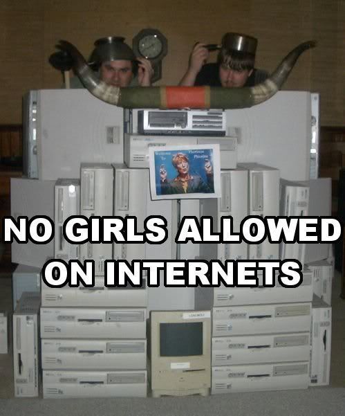 And yeah; there's no reason to believe that anyone on the internet is a woman. You can safely presume that someone is a man...the only proof I'd be willing to accept otherwise would be a woman taking a picture of herself naked next to her computer with her log-in screen prevalently displayed.