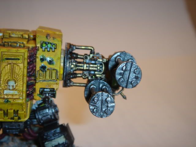 That being said, I'm not really a fan of how that arm turned out. It seems to stick too far out from the dreadnought's body, and i don't like how the guns are offset from one another. It also doesn't seem armoured enough for a dreadnought. Maybe use some plasticard to close it in a bit?