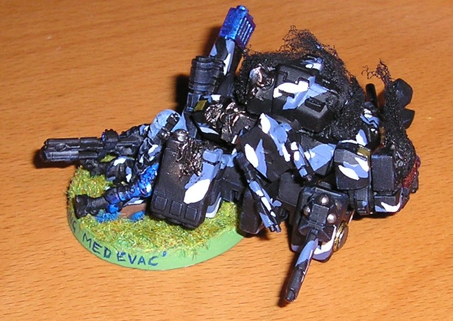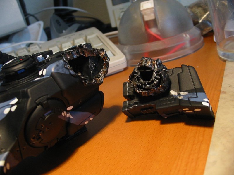 I've gone through the painting tutorials, but couldn't find (or just didn't see) what I was looking for. The tank pics I had posted earlier (with the artillery shell sticking out of it) garnered some good feedback...