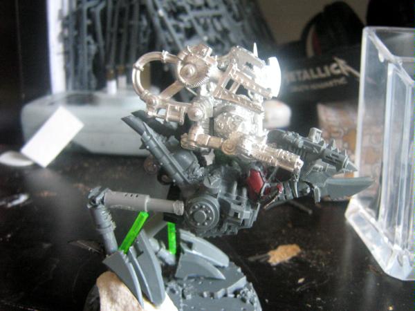 Love the robot chicken concept, I may do something similar as a Chaos dreadnought. It would be particularly suitable for a Tzeentch 'blessing'  A mini version would also be great as an Obliterator. Hmm, just got a bizarre vision of a robot chicken emerging from an egg-shaped drop pod - now that would make a cool diorama...