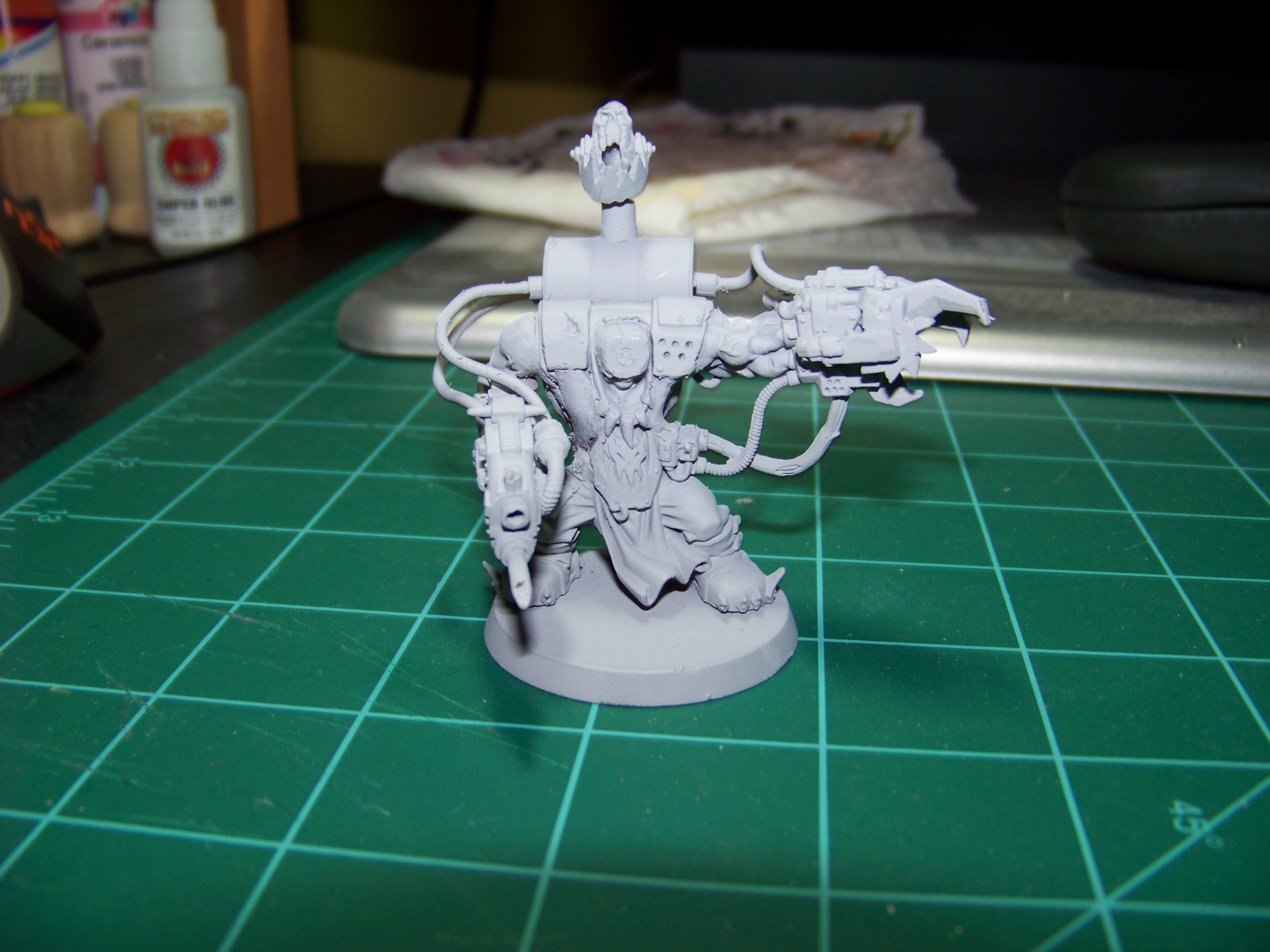 The only thing you might want to consider is the original Mad Dok model is on a standard 25mm base so yours probably should be too if you want him to be tourny legal.