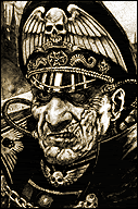In the dark future, there are skulls for everyone. But only the bad guys get spikes. And rivets for all, apparently welding was lost in the Dark Age of Technology. -from C.Borer |