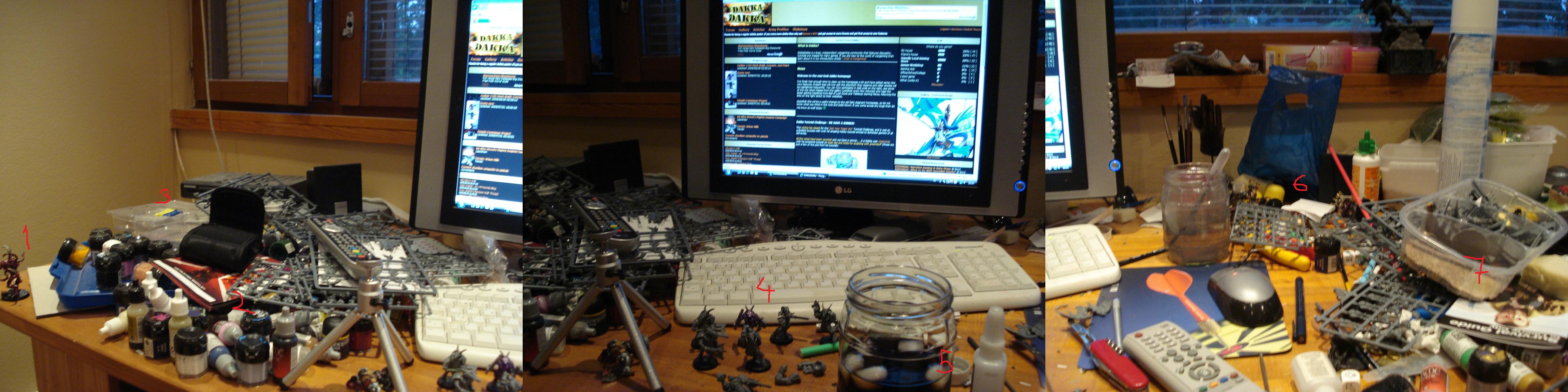I commend you for your courage. I'm far too afraid of spilling paint on my keyboard to paint near a computer. But yeah, I think it could use a bit of tidying.