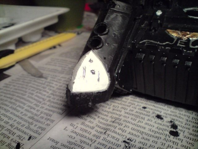 an attempt at battle damage on the front part, i carved into the actual plastic and then painted on it