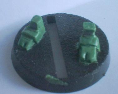 Also, I cant stand the high elf feet, so something had to be done. Hence i glued a pair of HE legs to a base, chopped the feet off and sculpted these over them. Two extra blobs of GS and now everyone can be a bit taller with robotic feet!