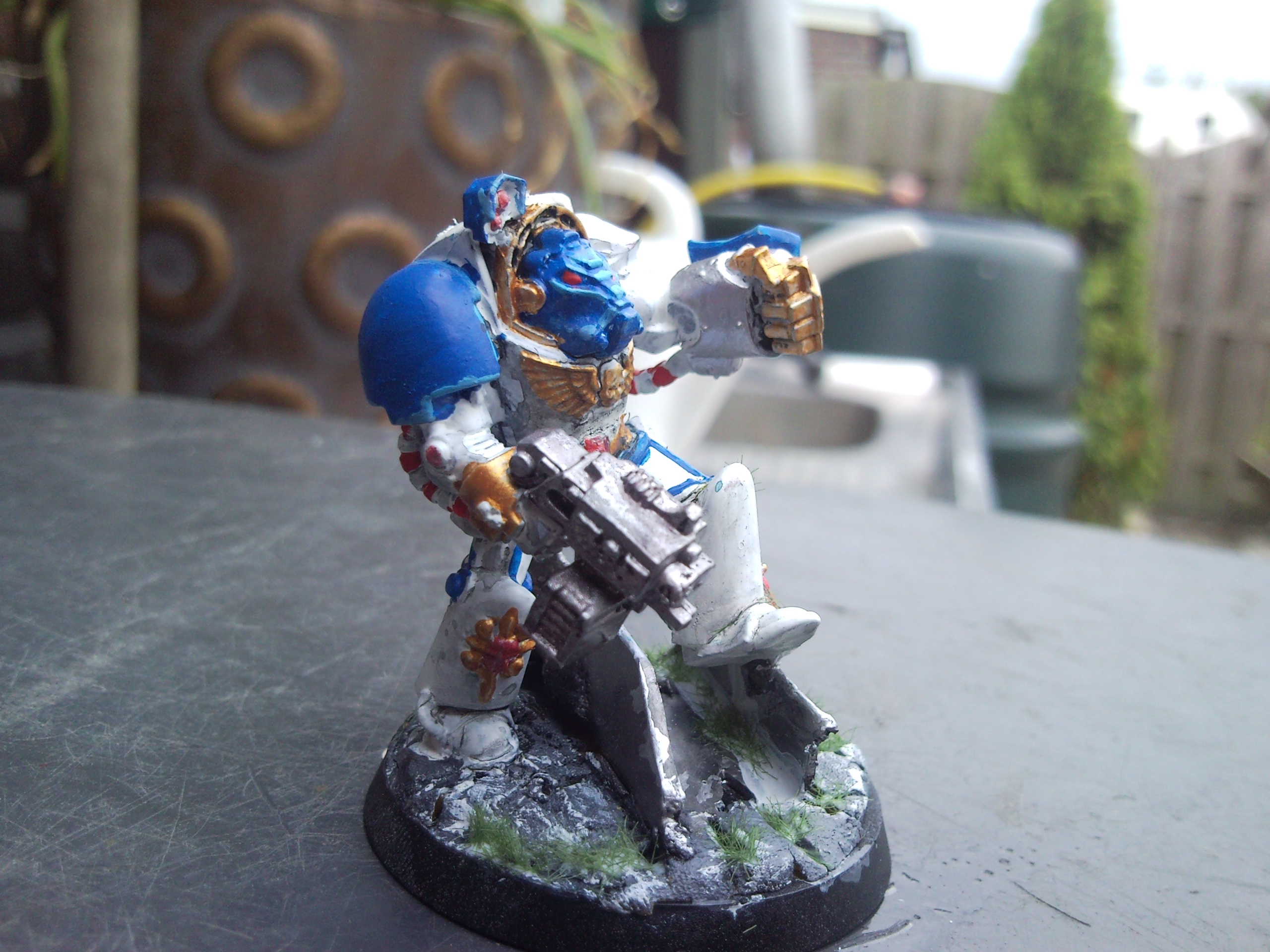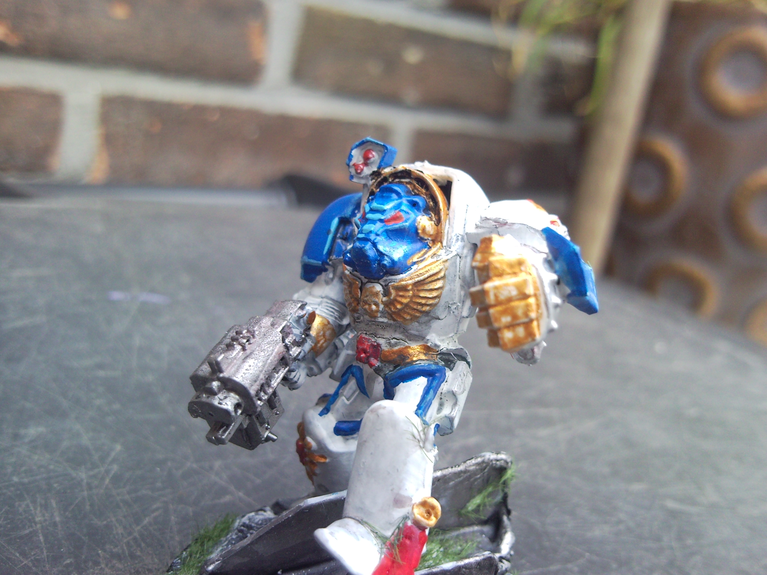 Your gold is not mixed well enough, and could really do with a wash of ogryn flesh, and the stormbolder would look much better with a wash of black.