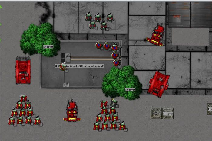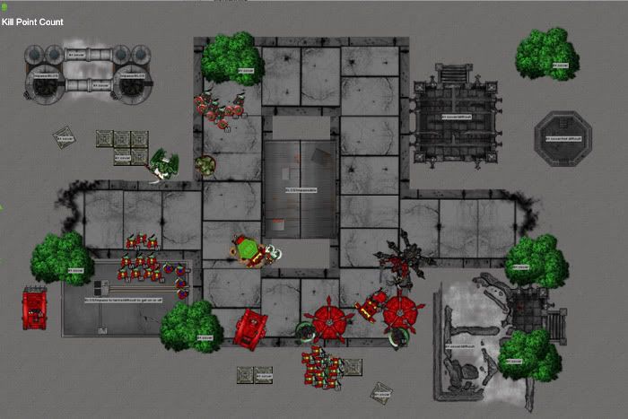 The Landspeeder moved to get maximum firepower on the Pus-Cannons while the Baal turned all of its firepower on Lord Wes'Mol. Lemartes and Company got into position to assault Lord W'at'shem.