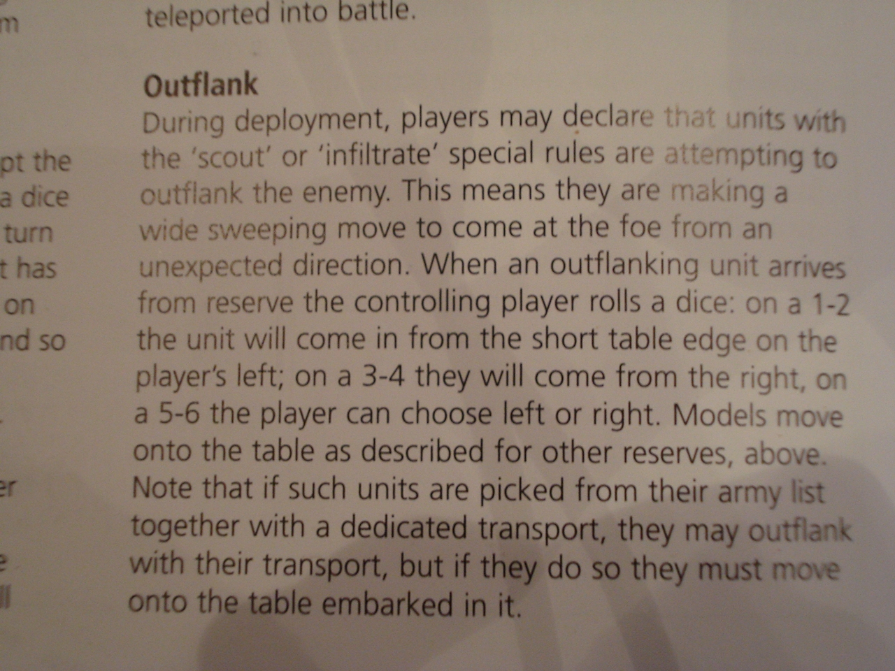 Spetulhu wrote:I'd have no problem with my opponent rolling the power before deployment so he can actually be sure of Outflanking if he gets it. But as the rules stand now it's a useless power unless you risk placing the piggies in reserve to start with.