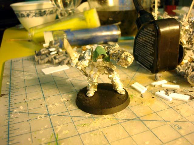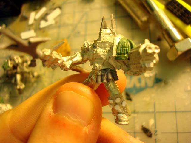 Ok back to questions. Dakka Dok- I cut a large strip of plasticard out and then held it about 3 or 4 inches above an open candle flame. As it began to warp, I quickly bent and prodded it into some more appealing shapes. Also, I made sure to sand it after to remove and finger prints.