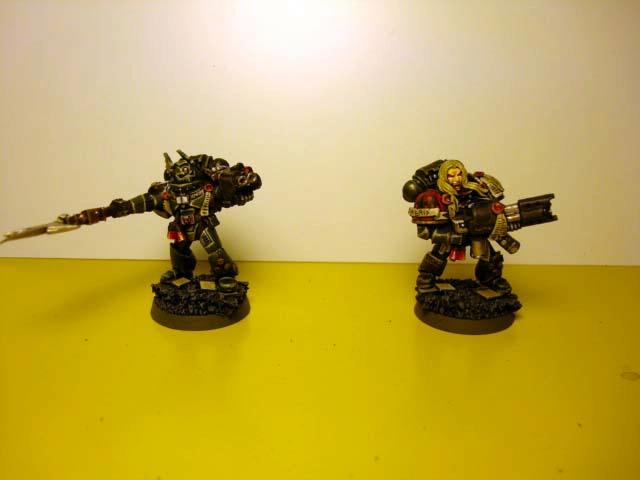 Interesting idea with the Black Crusade idea - Some more Vampiric touches would be good (ie Clawed gauntlets, Wings, etc...). Perhaps designate your Assault Marines with Bat Wings instead of Jump Packs once you expand? Could say that the Wings are mutations from exposure to the Warp Energies. The good thing with Vampires in 40K is, again, the Shapeshifter element. If you ever decided you didn't like something about this army's story, you can just bluff it and say that they just assumed the appearance of Marines. That's the beauty of a non-codexed army, the fluff is so open ended.