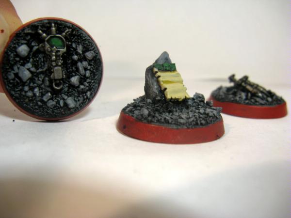 Ok, now for the Objective Markers which took about 3 seconds to make/paint (from left to right: Lost Armour, Sacred Script, Extra ammo)