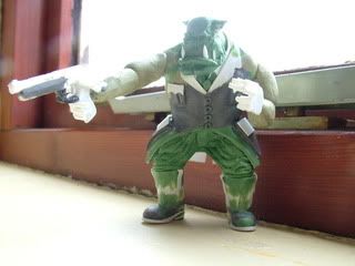 I've had a few people say that and I have many plans for proper gangster orks. Alas my intention with this chap is more military but once he's done I'm going to have a bash at some gangster orks (Da Mob) with fedora's, spats on their shoes and nice pin-stripe suits.