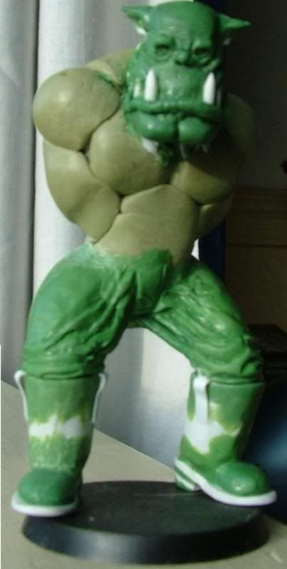 Cheers. Personally I don't really care for the way an ork's head sits right in front of its chest. I wanted mine to look more gorilla than Quasimodo. But that's the best thing about sculpting your own models, you can make them look however you want.