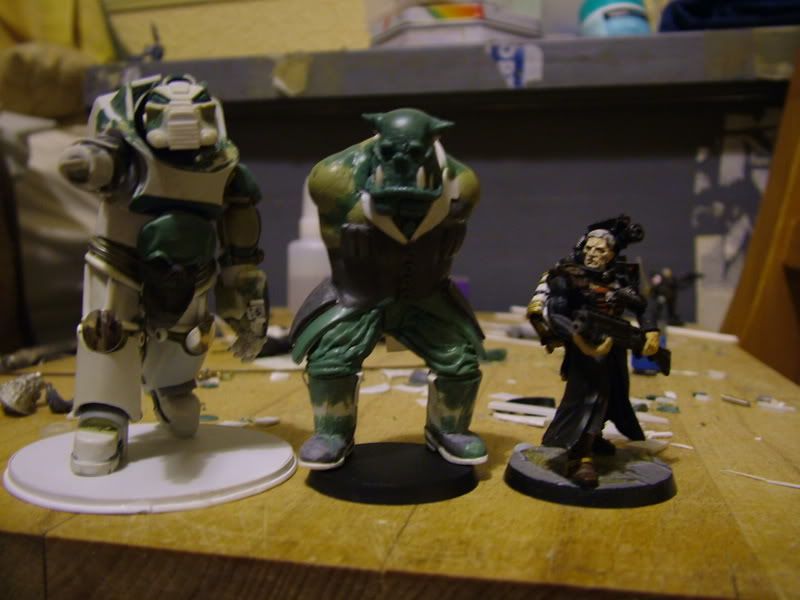 Looks pretty cool man. I thikn the terminator is a big humongous. Personally I think the Orks head is just fine where it is. Still watching lol