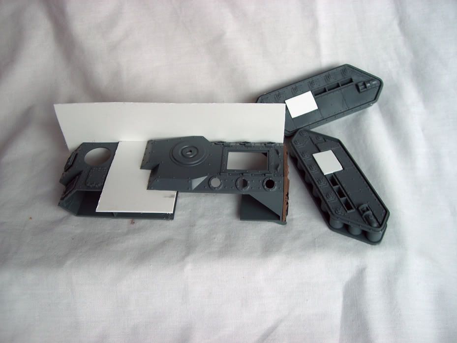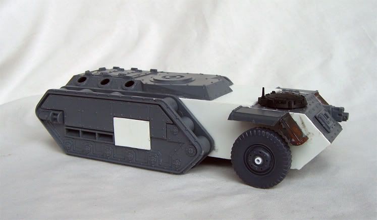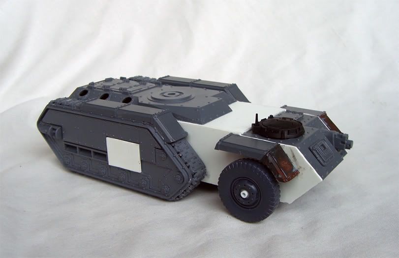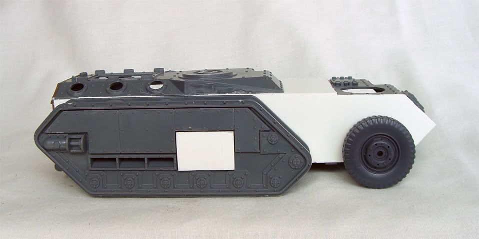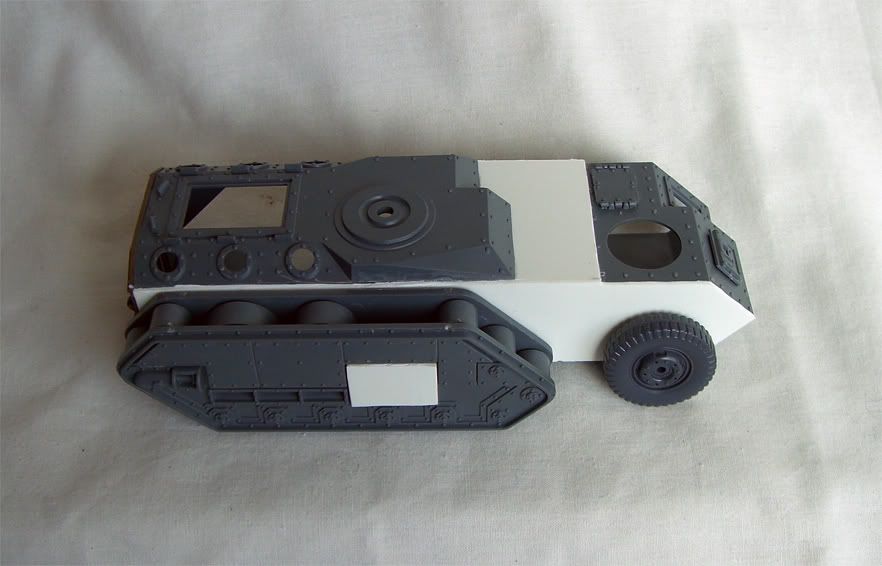 I'm putting my foot down and saying that I'm not shortening the tracks. I wanted this to be an actual 40k transport (using only 40k bits and plasticard) that looks like it could actually hold a squad of guardsmen in it's belly