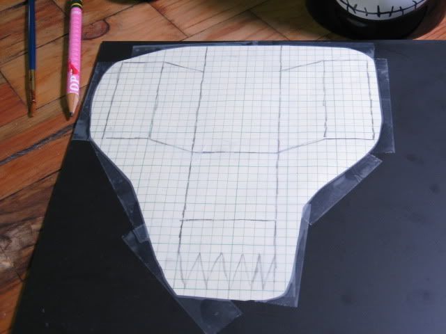 First, I drew the basic template onto graph paper, then taped it down to a sheet of .040 sheet styrene. When I tape it to the styrene, I also put tape along all the lines you are going to cut. this gives the blade a bit of bite when I use it, lessening the chances of slipping.