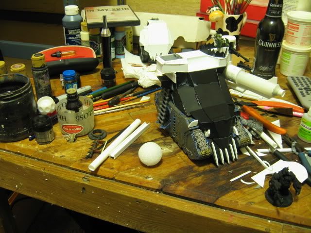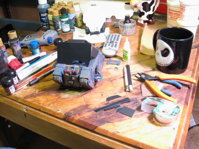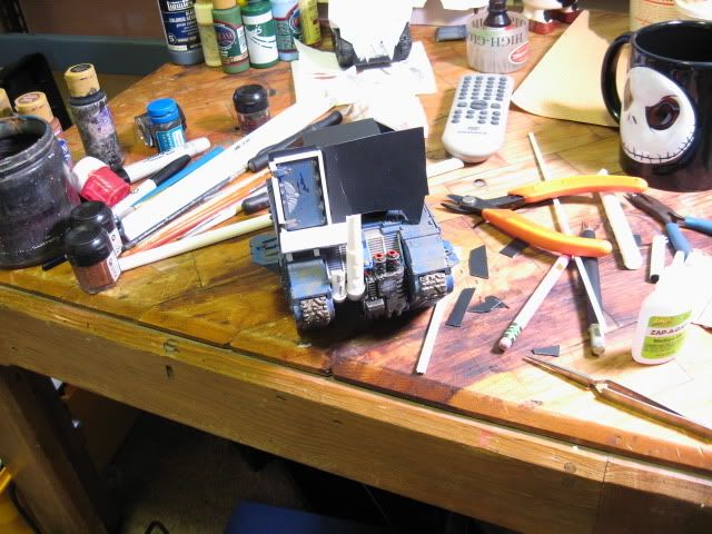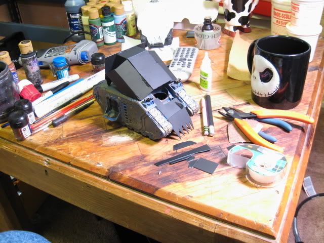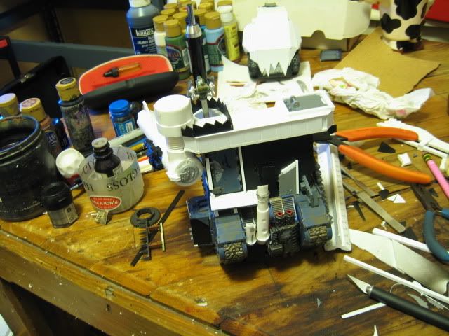 I need to have them both done before Sunday evening, If I'm going to keep the schedule I'll need to get everything done in time. I went with the hardest tanks first for two reasons. The first is They will require the most thinking, so I want to get them out of the way before my brain turns to mush around Wednesday. The second is they are the highest point cost models, so if I need to fill out points I can just drop the Rhinos, and my Deffskulls can just footslog Their lazy butts across the battlefield. besides, the smaller Ruzz Bot will be for them anyway.