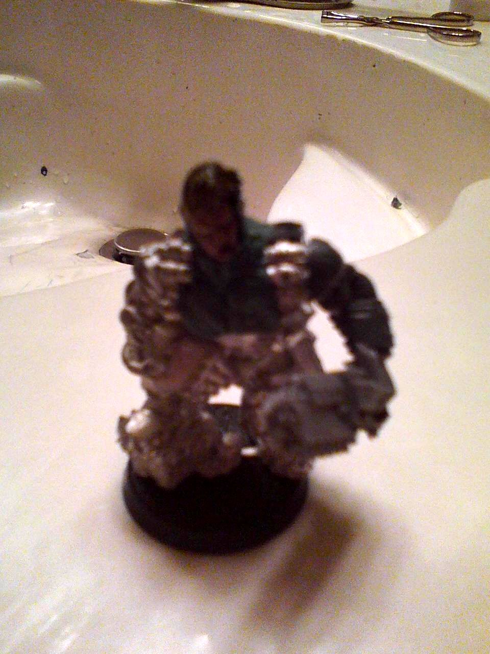 With all of the PlanetStrike terrain we've (I've) been purchasing lately, I've convinced a couple of people to start playing Necromunda. As I've heard they're particularly challenging, and have a love for big dumb muscle heads..... I've chosen Goliaths. Without further hesitation, I present to you with my Blurry Gang Leader. Essentially I'm going to be using ork nobz as my leader and gangers, and catachans for the juves, since everyone else will most likely use catachans for their gangs, and mine are supposed to be more muscly.