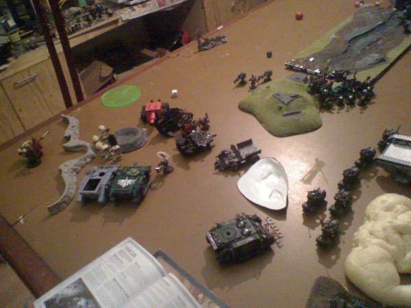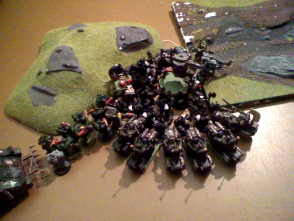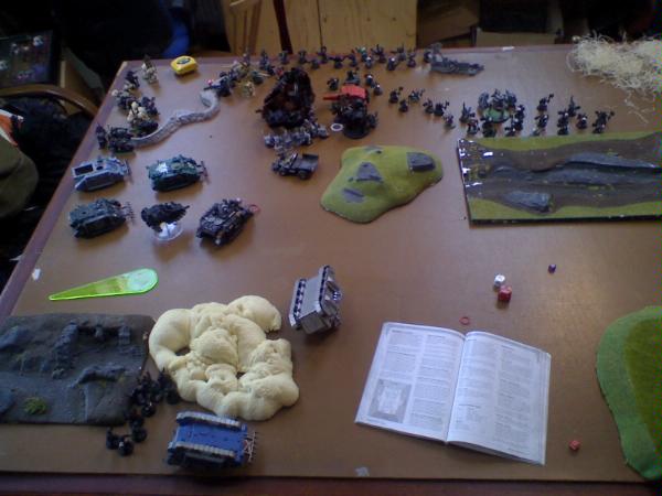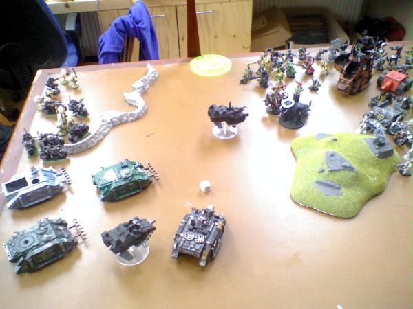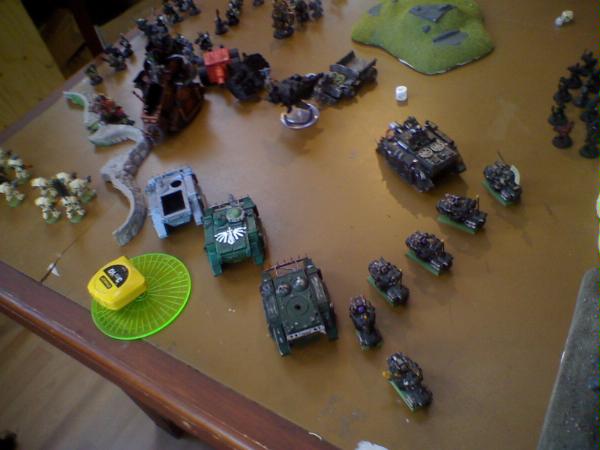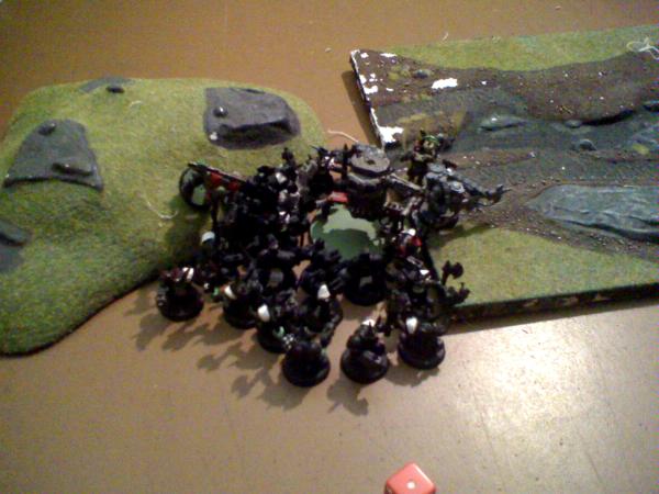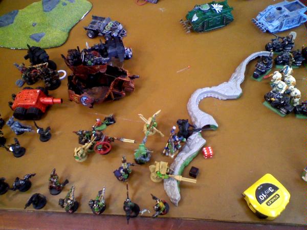 He popped my objective-sitting rhino with the Zzap gun and some combi-rokkits and Big Shoota fire from the Nobz and Ghaz: