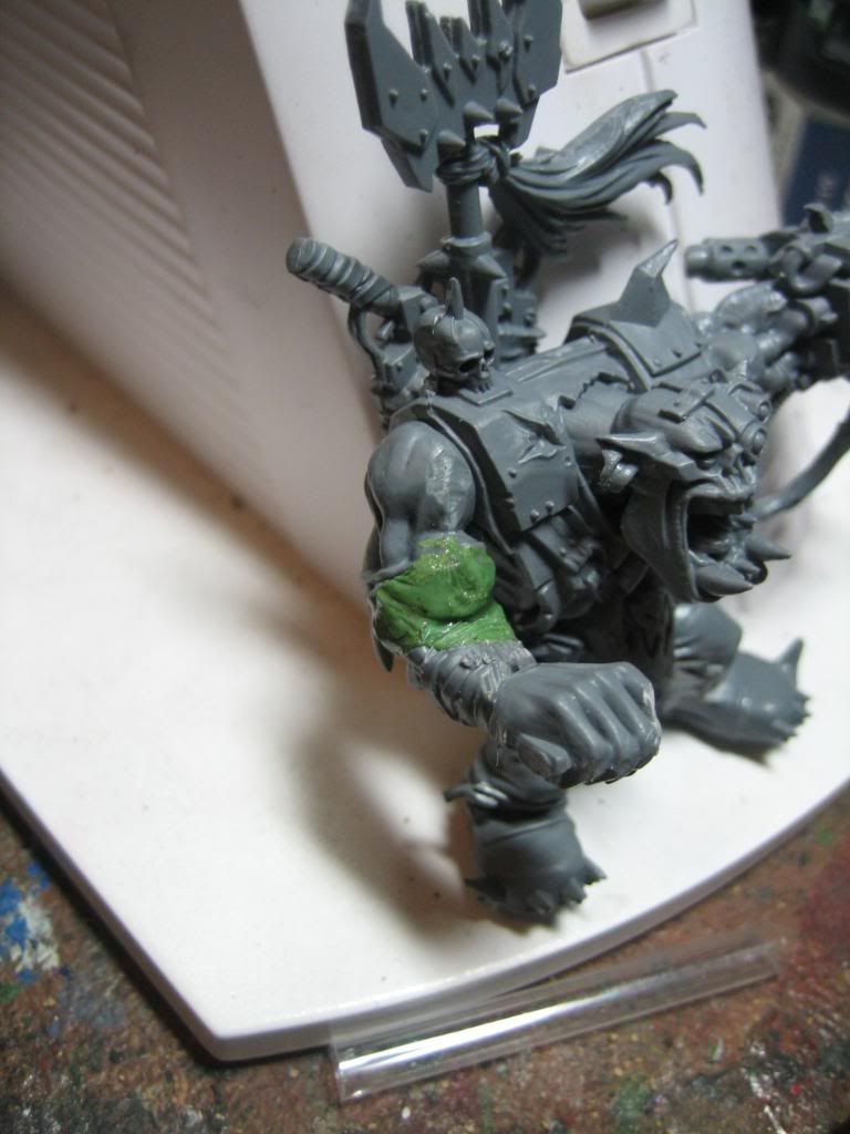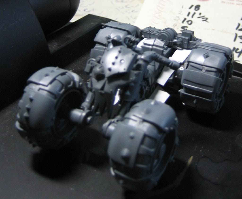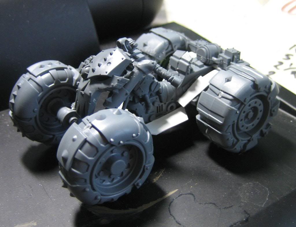 I wanted to do something cool to the 2 warbosses so I decided to give them custom ridez, the first I had to do some plasticard and greenstuff work to the quad and the warboss but the end result is pretty cool. I just have to figure out where the weapons are going now....