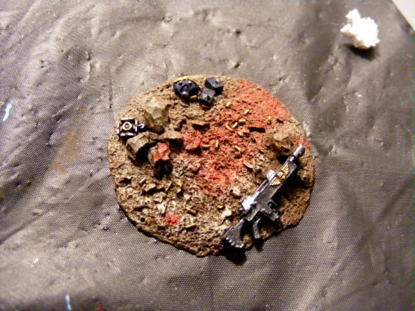 This is going to be applied to her base when finished. Since i play IG it is only appropriate for my girlfriend's army to be overrun with IG trophies. The blood is going to be attributed to a Sergeant that has been ripped in half by the Carnifex.