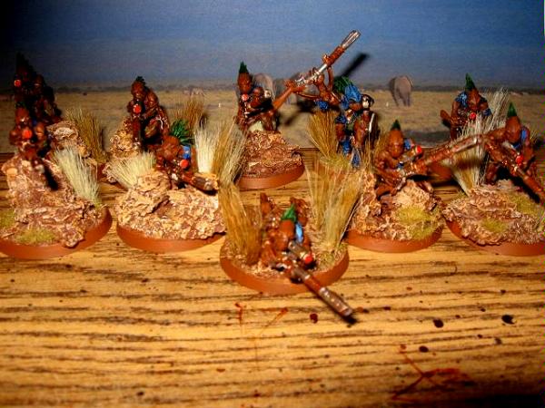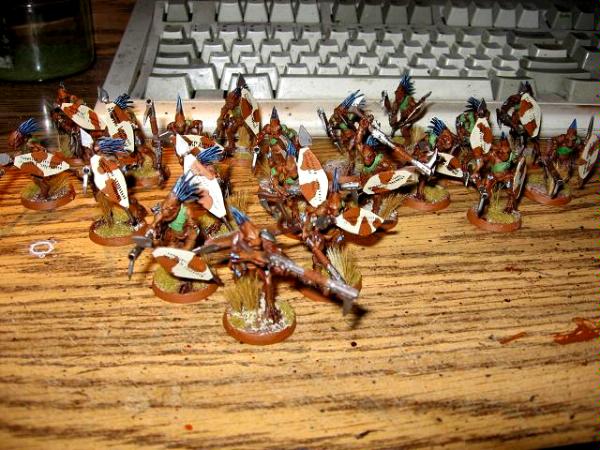 The first batch of conversions, a unit of 10 Kroot Hunters with sniper rifles.