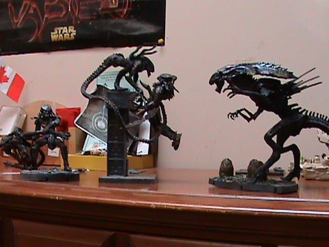 I also have some AVP stuff,(from Christmas '06) since it isn't that impressive, I'm looking for one of those face huggers, or I found a life size-ish Alien head, not sure if it was a mask or a bust. Looked too freaky to get closer, 'cause that was a few years back.