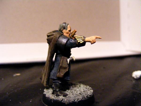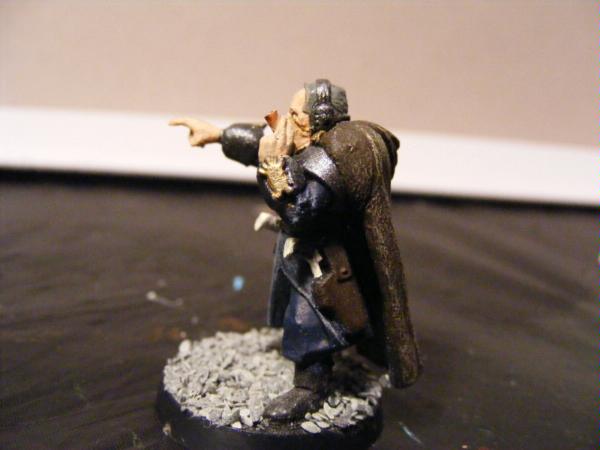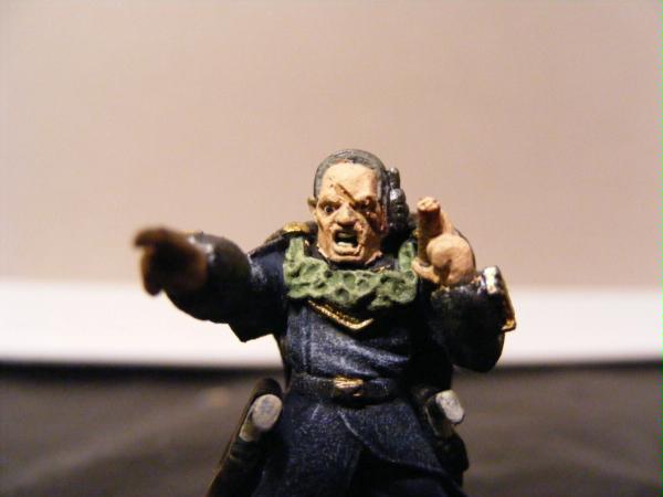 The second character is Chancellor Phias Adenon (pronounced fie-us). He is the Chancellor of War to the Arc of Derelect. He is a Ursarker Creed character. His story begins with his parents. Phias was born into a wealthy, high end family that had a myriad of connections to the Arc. Because of his fathers status in Derelect he was allowed to attend the Military Order and become a student of war. Upon graduating, he immediately became a conscript. Phias loved the heat of battle. He adored the smell of blood and the sound of lasgun fire. He was promoted through the ranks; guardsman, sergeant, captain, etc. It was during the Battle for the City Gate against a major Ork Waaagh that Phias earned his colors. He was already a lord in the Arc's courts and a trusted advisor of the Arc himself. But during this battle, Phias slew an inumerable amount of orks with is fathers power sword. He led a squad of nine guardsman, unfettered, into the fury of the battle and eliminated the warboss of the waaagh. After wards the Arc granted Phias the honor of becoming a Chancellor, one of the royal guard, and told him to find a bodyguard. Phias knew who. That man who had slain the ork on the tower.
