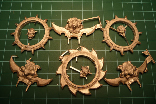 I'm planning on converting up approximately 40 nob bikers for an army, and I was considering scratch building the bikes to resemble the wheels from Confrontation's Goblin Mad Wheels.