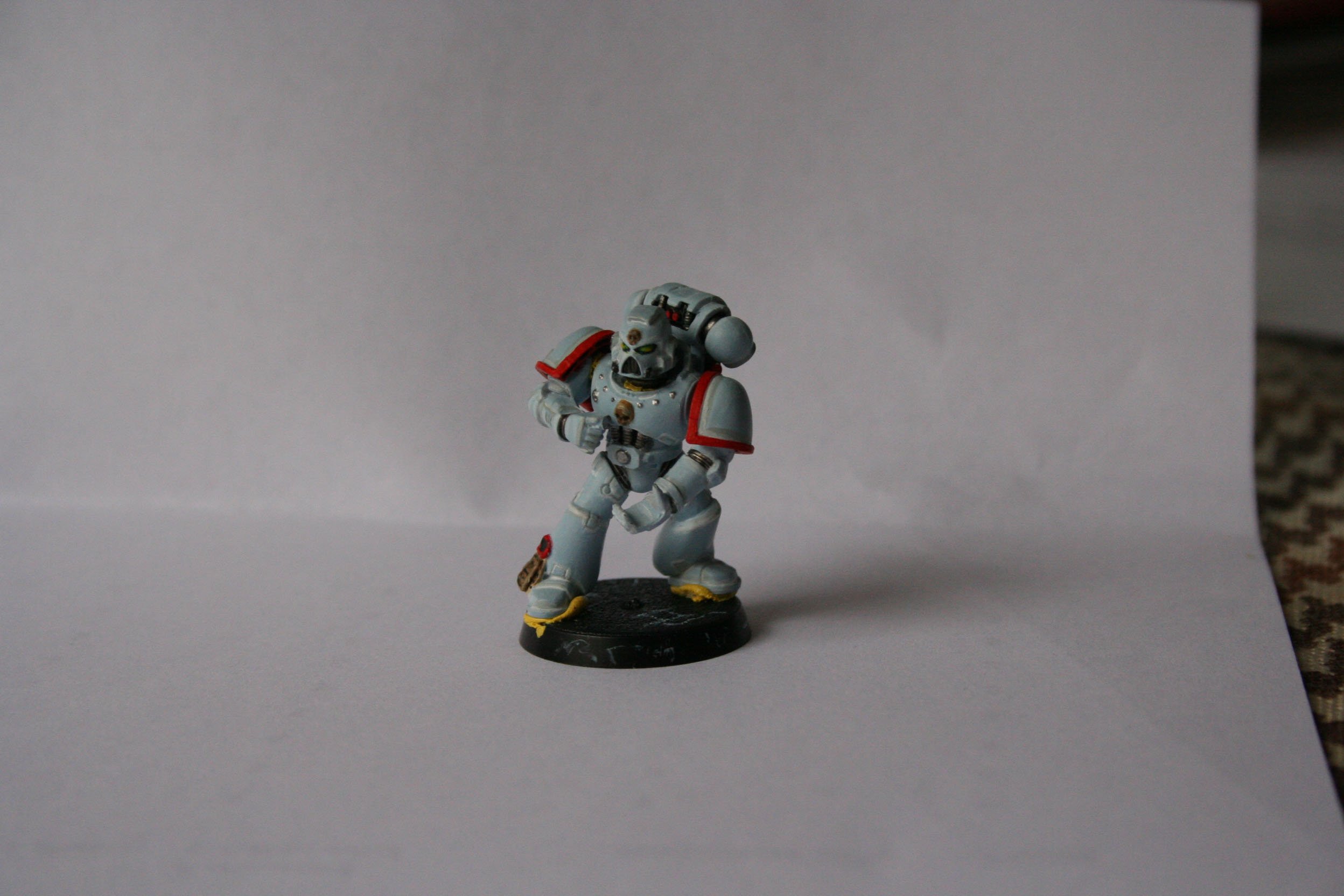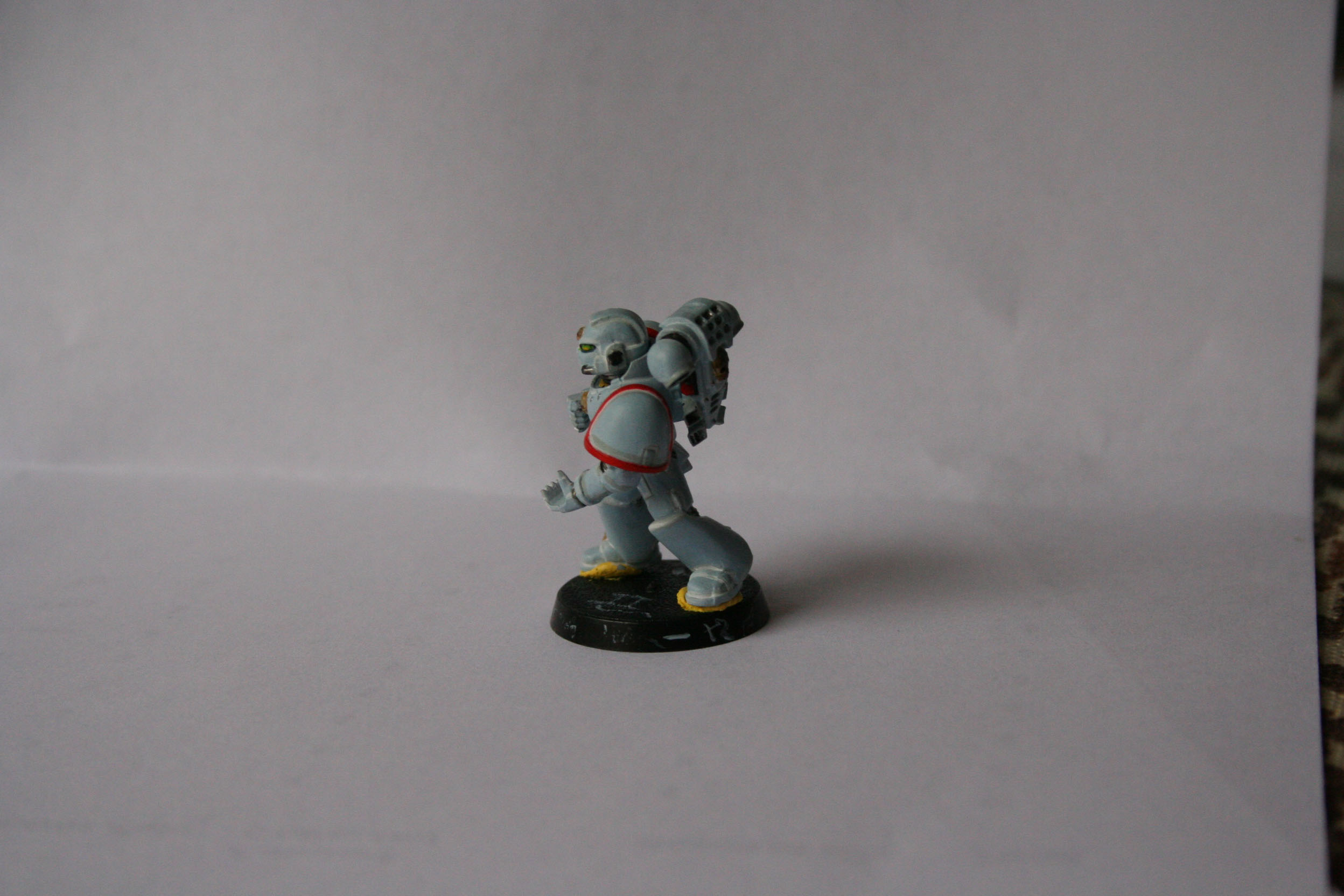 Yeah i last minute changed my mind i painted over the white with space wolf grey - so had to convert him to space wolf , its my first time painting warhammer ( well i did paint a few in primary school ) and i didnt really plan a actual colour scheme and just winged it while i was going , after i finish my other few and make a little 4 man crew , my next will be white scare and this time its going to be planned
