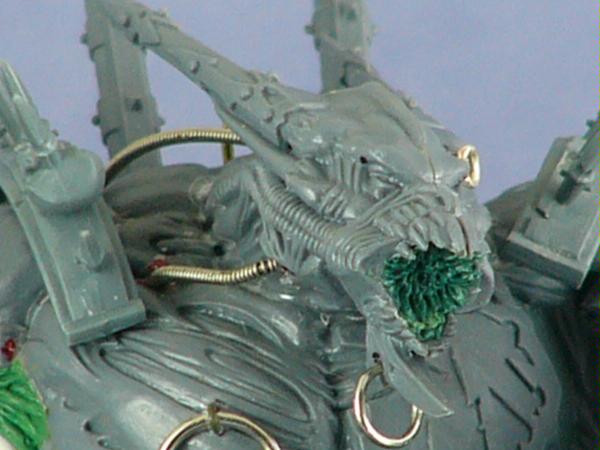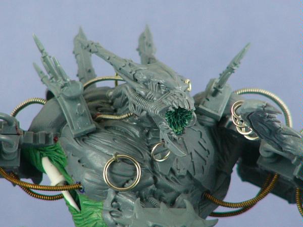 It may appear to have a Slaanesh theme with all of the rings and loops. Well, that's not the case (my Word Bearers would not tolerate that). Those loops and rings are there to restrain and torture it while not in combat.